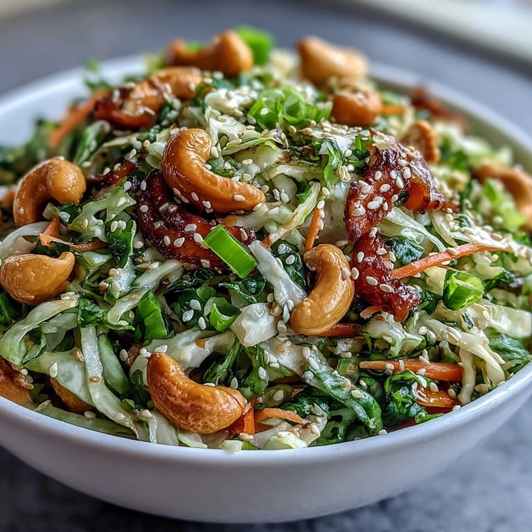 Save My neighbor brought this salad to a summer potluck, and I watched people go back for thirds. The crunch was so loud you could hear it across the table. She scribbled the recipe on a napkin while we sat on her porch, and I've been making it ever since. It's one of those dishes that looks impressive but comes together in the time it takes to boil water for pasta. Every time I slice into a cabbage, I think of that afternoon.