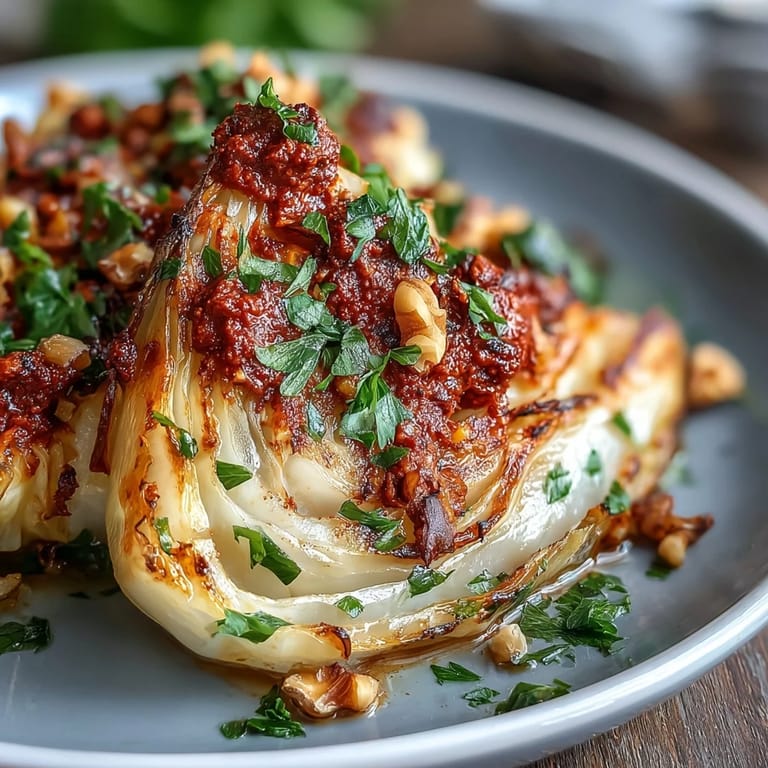 I made this for a small dinner party once, worried it might seem too simple. My friend who claims to hate cooked cabbage went back for seconds and asked for the recipe before dessert. The way the nutty, tangy romesco clings to the tender cabbage wedges makes every bite feel indulgent. Its one of those dishes that surprises people, the kind that starts quiet conversations about how vegetables can actually be exciting. I love watching faces change after that first bite.