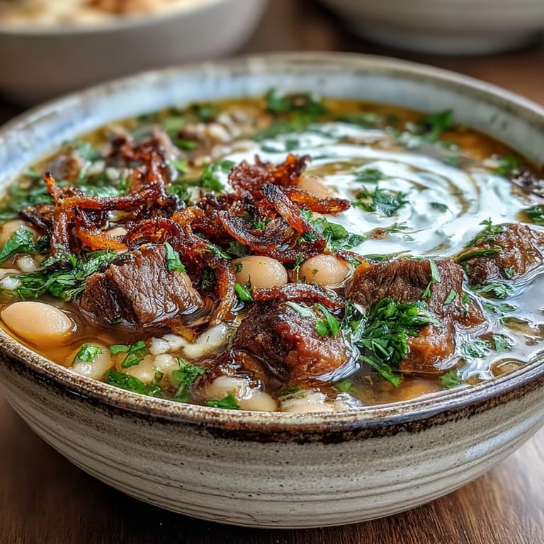 Save My neighbor brought over a container of this soup on a gray afternoon when I was too tired to cook, and one spoonful transported me straight to a Tehran kitchen I'd never actually been in. The combination of tender beef, earthy barley, and that unexpected swirl of sour cream with crispy mint-fried onions felt both exotic and deeply comforting. I spent the entire evening asking her questions, and by the next morning I was already at the market hunting down fresh herbs.