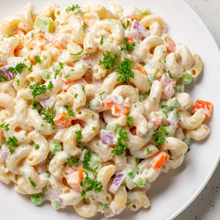 Save Every summer barbecue needs a reliable side dish, and macaroni salad became mine after a sweltering afternoon when my neighbor brought a bowl to a potluck and everyone went back for thirds. I watched how people's faces lit up when they took that first creamy, tangy bite, and I realized this wasn't just pasta—it was the dish that made people linger at the table. Since that day, I've made it countless times, each batch slightly different depending on what's in my garden or what I'm craving, but the formula always works.