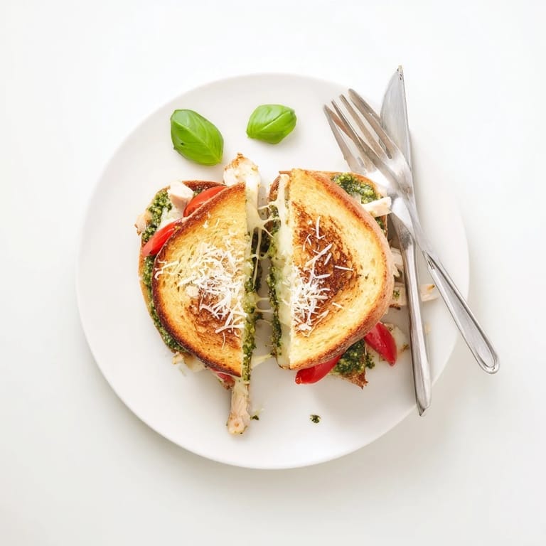 Save Rainy Sunday afternoons were made for experimenting in the kitchen, and this sandwich came from one of those happy accidents. I had leftover rotisserie chicken, a jar of pesto that needed using, and a serious craving for something warm and comforting. The first bite made my husband actually pause his movie and ask what I'd made. Now it's our go-to when we want something that feels fancy but takes barely any effort.