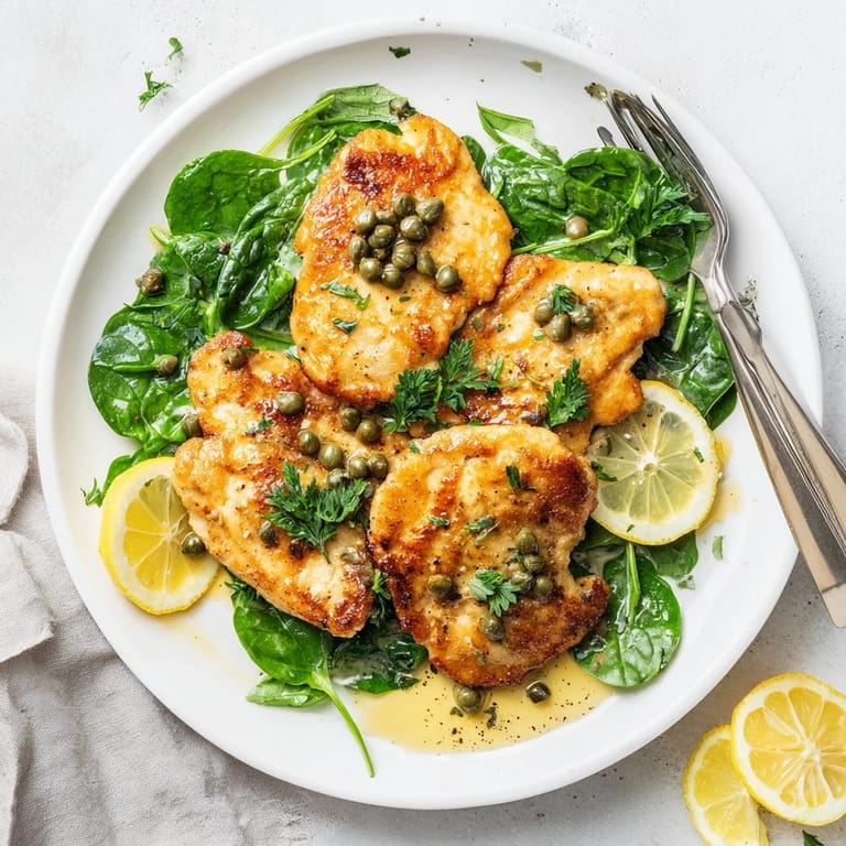 - Arrange wilted spinach on plates, top with chicken cutlets, spoon that lemon butter sauce generously over everything, and finish with chopped parsley and lemon slices if you want it to look extra pretty.