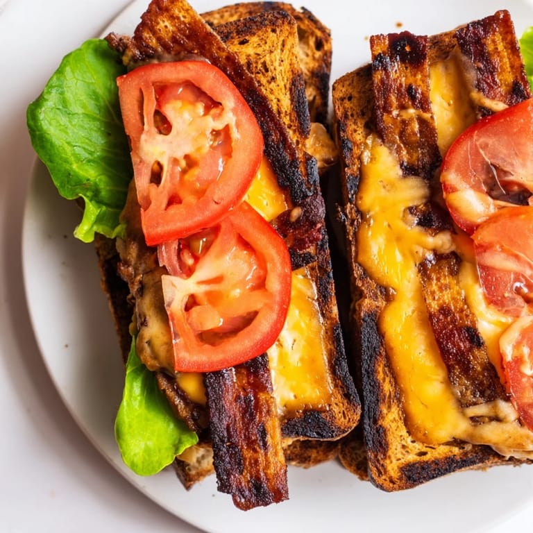 Save My neighbor knocked on my door holding a block of tempeh and asked if I knew what to do with it. I'd been experimenting with vegan alternatives for weeks, and that random Saturday afternoon turned into an impromptu cooking session that resulted in this ridiculous sandwich. The tempeh bacon came out so crispy and smoky that we both stood at the counter eating strips straight from the pan. When we finally assembled the grilled cheese, the smell alone made her teenage son appear from his room asking what we were making.
